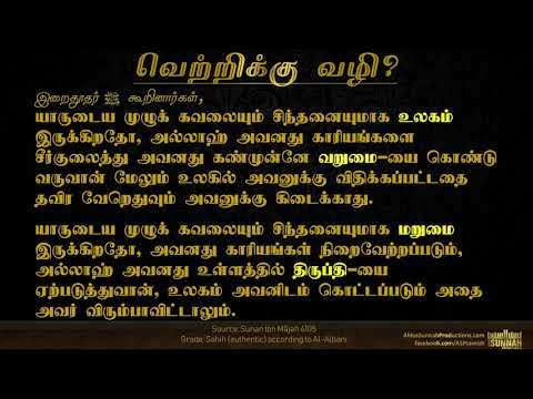 யாருடைய முழுக் கவலையும் சிந்தனையுமாக மருமை இருக்கிறதோ, அவனது காரியங்கள் நிறைவேற்றப்படும், அவனது உள்ளத்தில் அல்லாஹ் திருப்தியை ஏற்படுத்துவான், உலகம் அவனிடம் வரும் அதை அவர் விரும்பாவிட்டாலும்.